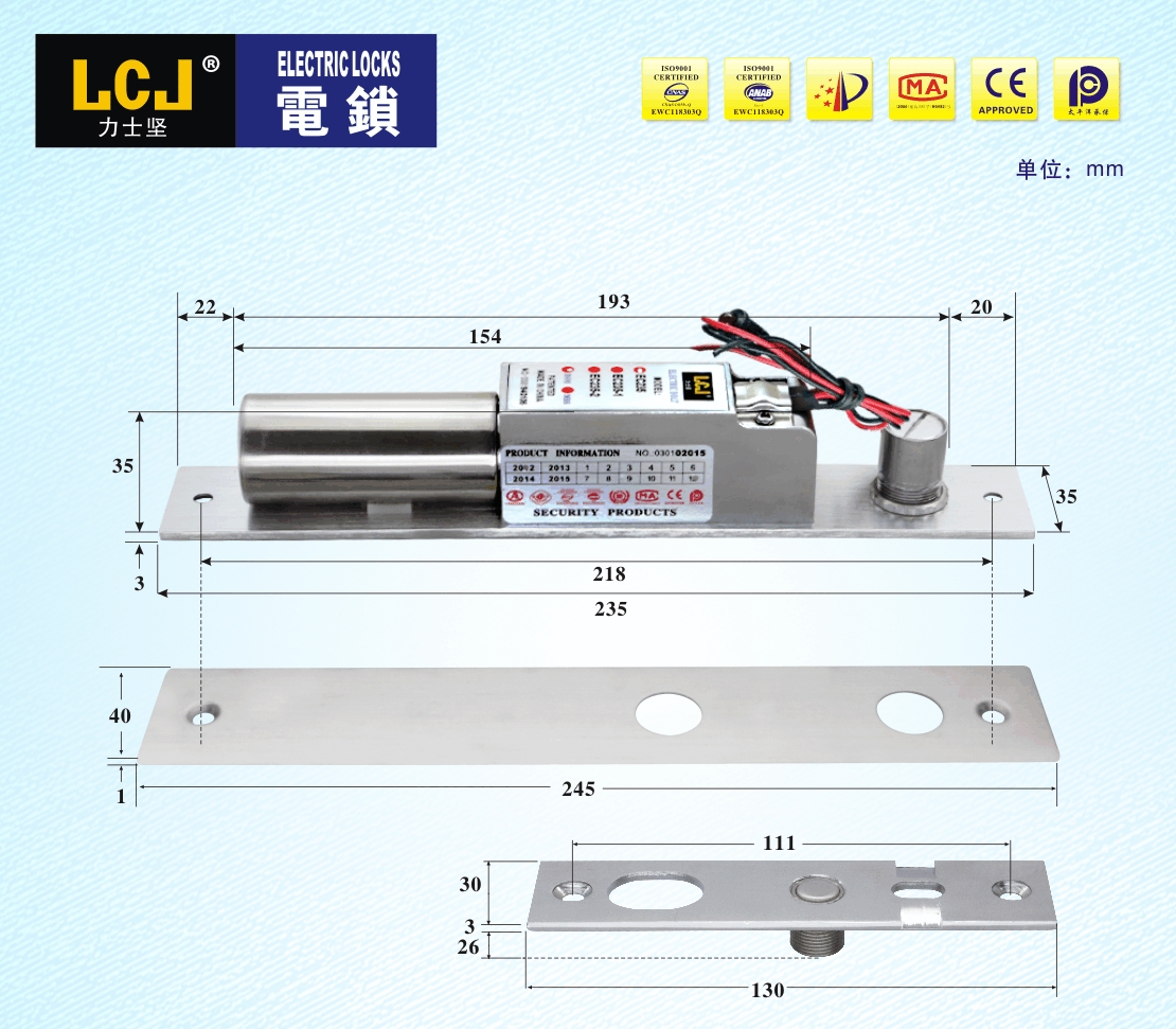 EC電插鎖是按照《電插鎖》標準自主設(shè)計開發(fā),擁有實用新型、外觀等專利。