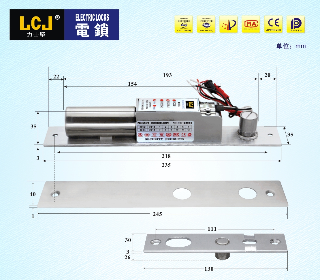 EC電插鎖是按照《電插鎖》標(biāo)準(zhǔn)自主設(shè)計(jì)開發(fā),擁有實(shí)用新型、外觀等專利。